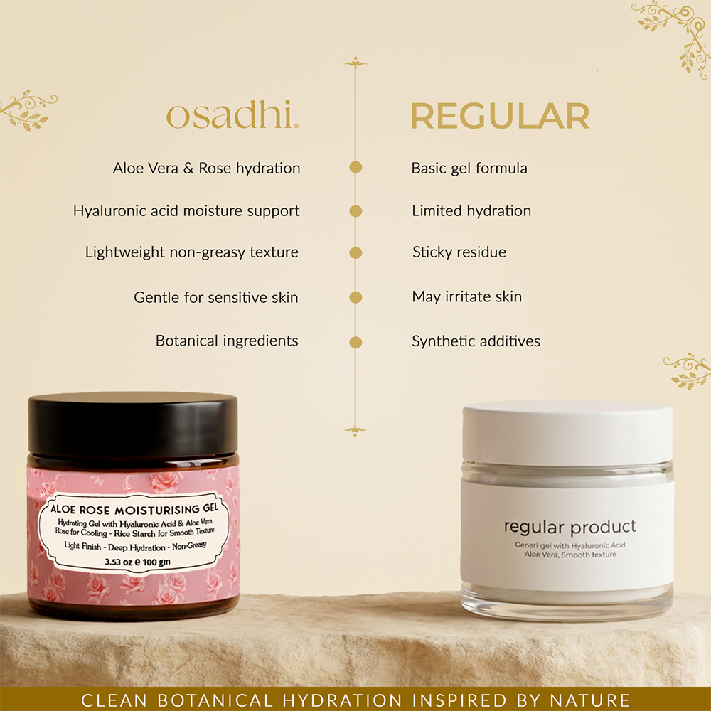 Osadhi’s Rose Aloe Gel is super lightweight, soothing and deeply hydrating. It absorbs quickly and leaves the skin fresh, soft and beautifully balanced. A perfect everyday gel!